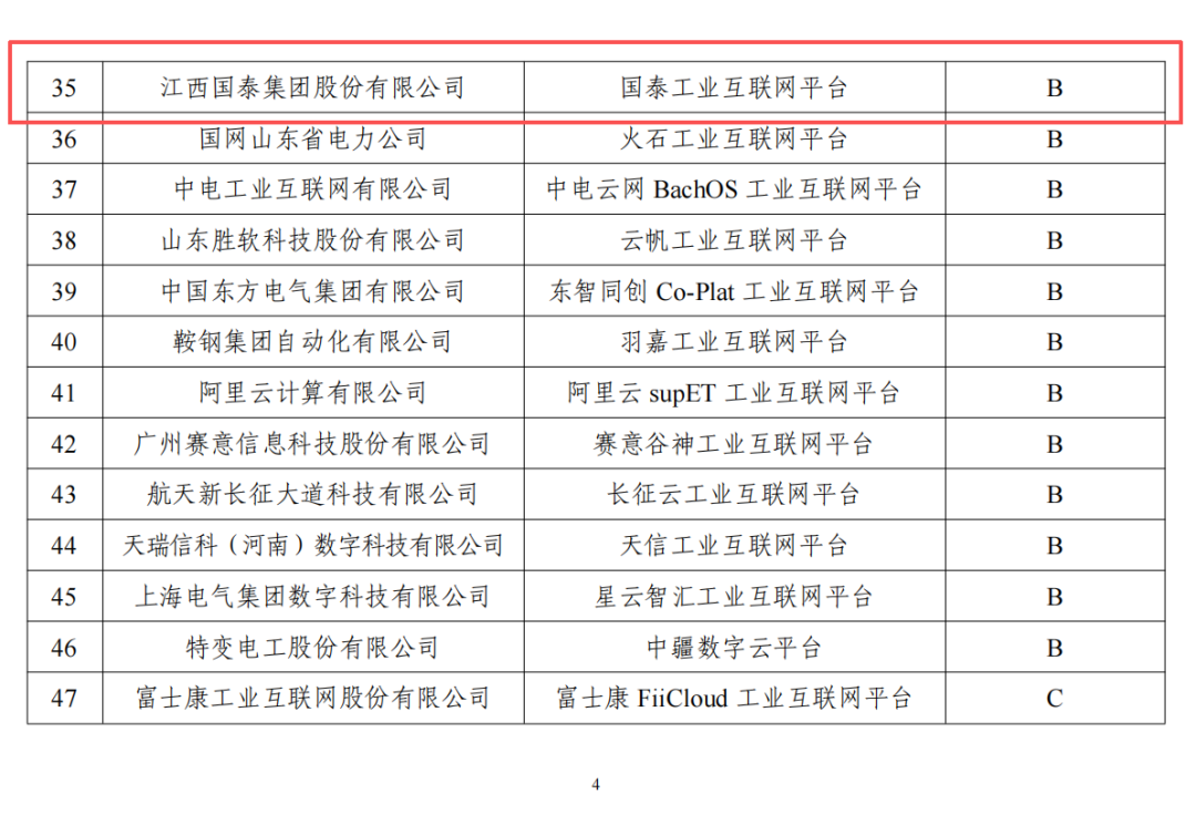 近日,工业和信息化部公布了2025年度国家级跨行业跨领域(简称“双跨”)工业互联网平台动态评价结果。国泰工业互联网平台凭借持续技术创新与行业赋能实效,排名从去年41位次提升至第35位,成为我省唯一跻身该权威榜单的平台,展现了江西在工业互联网平台建设方面的硬实力。