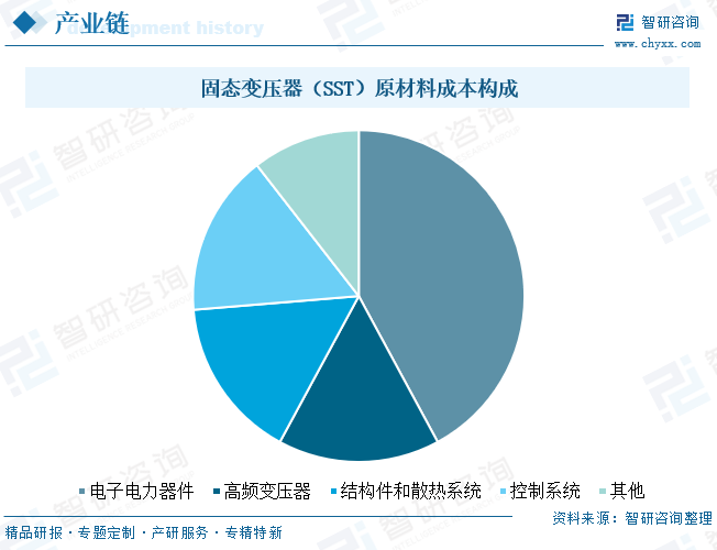 固态变压器(SST)的成本结构中,电力电子器件占比最高(约40%),主要由于碳化硅、氮化镓等宽禁带半导体材料价格昂贵,且高耐压要求进一步推升成本;高频变压器约占15%,其铁氧体、非晶合金等高性能铁芯材料及精密制造工艺增加了支出;结构件与散热系统(15%)及控制系统(15%)分别涉及散热器、机柜、液冷装置和控制电路等关键部件;其余10%为辅助电源等杂项。整体而言,SST成本高度集中于上游核心器件与材料,性能优化与成本控制仍面临挑战。