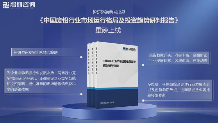 由智研咨询专家团队精心编制的《中国废铅行业市场运行格局及投资趋势研判报告》(以下简称《报告》)重磅发布,《报告》旨在从国家经济及产业发展的战略入手,分析废铅行业未来的市场走向,挖掘废铅行业的发展潜力,预测废铅行业的发展前景,助力废铅行业的高质量发展。