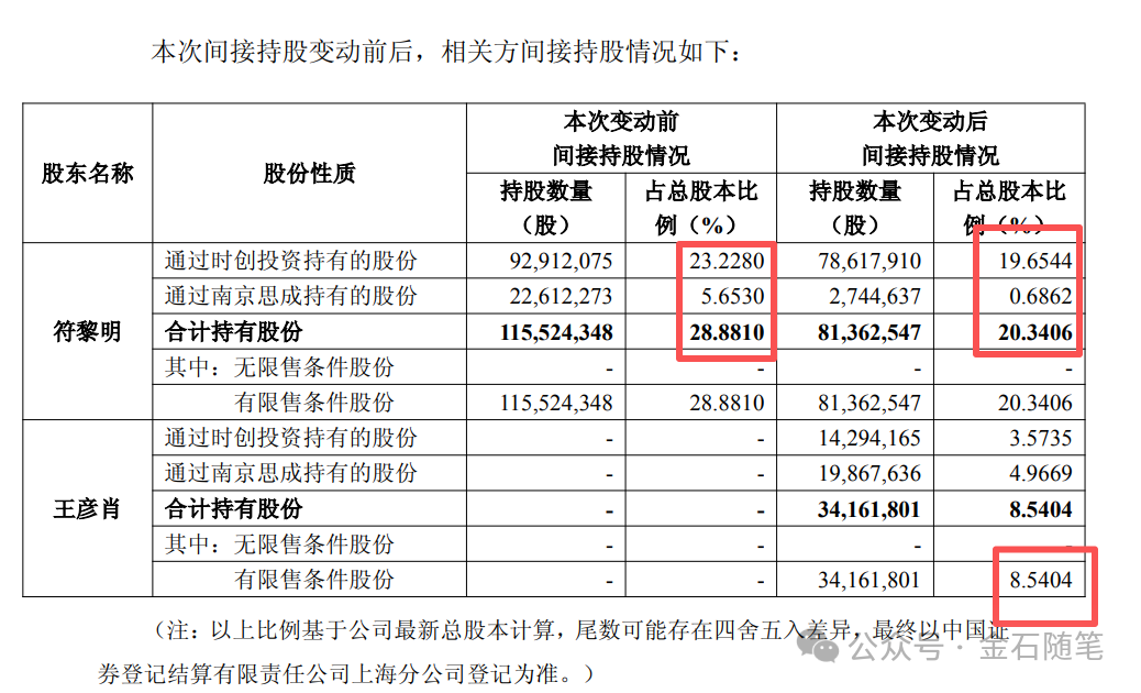 在本次持股变动前,公司实控人符黎明持有公司28.88%的股权,分别通过时创投资和南京思成持股,本次分割完成后,符黎明持股将减少为20.34%。
