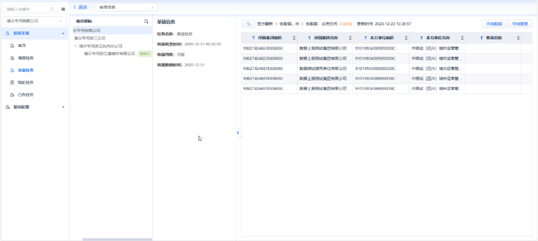目前,该方案已在某特大型中央企业集团成功应用。面对超1.5万家全级次单位的复杂组织,平台通过任务穿透下发、内置质量检查与逐级汇总审核,有效应对了司库穿透式监管数据报送的挑战,实现了效率飞跃、质量可控、管理透明的应用成效,验证了其在复杂场景下的落地能力。