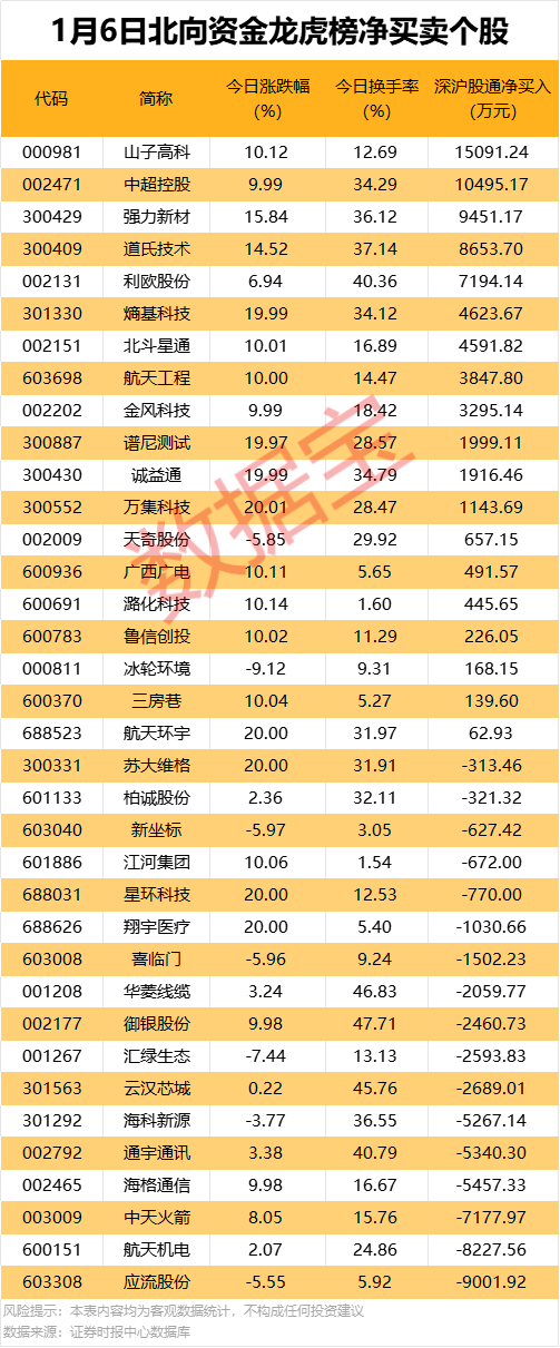 今日龙虎榜现身个股中,19股获北向资金净买入。净买入居前的是山子高科、中超控股,金额均超1亿元。