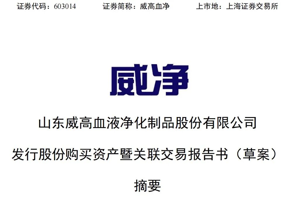重大资产重组草案公布,“威高系”内部强强联合。