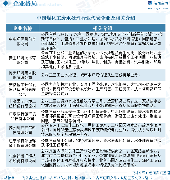 煤化工废水处理行业企业格局和重点企业分析