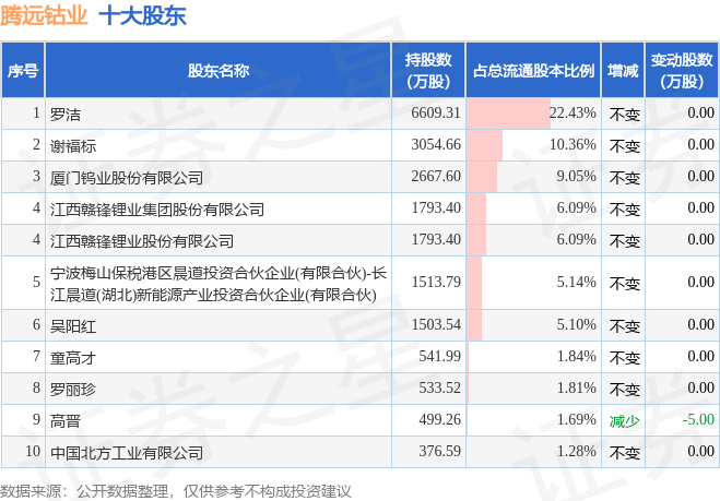 根据腾远钴业2025年三季报公布的十大股东详情如下: