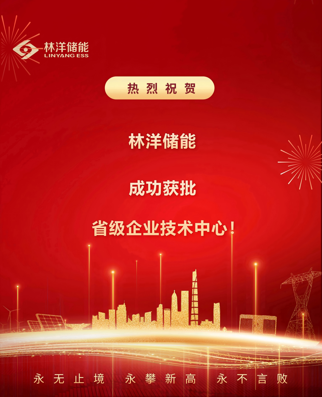 未来,林洋储能将以此次省级企业技术中心获批为新起点,进一步加大研发投入,完善创新机制,推动储能技术迭代与产品升级,为江苏省构建现代化能源体系、推动能源绿色低碳转型贡献更多“林洋智慧”与“林洋力量”!
