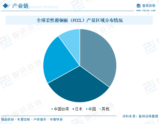 FCCL(柔性覆铜板)作为柔性印刷电路连接器的核心基材,其全球产能分布相对集中。中国台湾是全球最大的FCCL生产地区,约占世界总产量的35%;日本紧随其后,占比约32%;中国大陆地区的产量约占全球23%,近年来本土企业持续发力,除生益科技、鸿宇电子、福莱克斯等老牌厂商外,也涌现出如骏驰科技、优泰新材料、方邦电子等一批新兴企业,推动国内FCCL产业配套能力不断提升,为柔性印刷电路连接器的自主可控与迭代升级奠定了坚实基础。