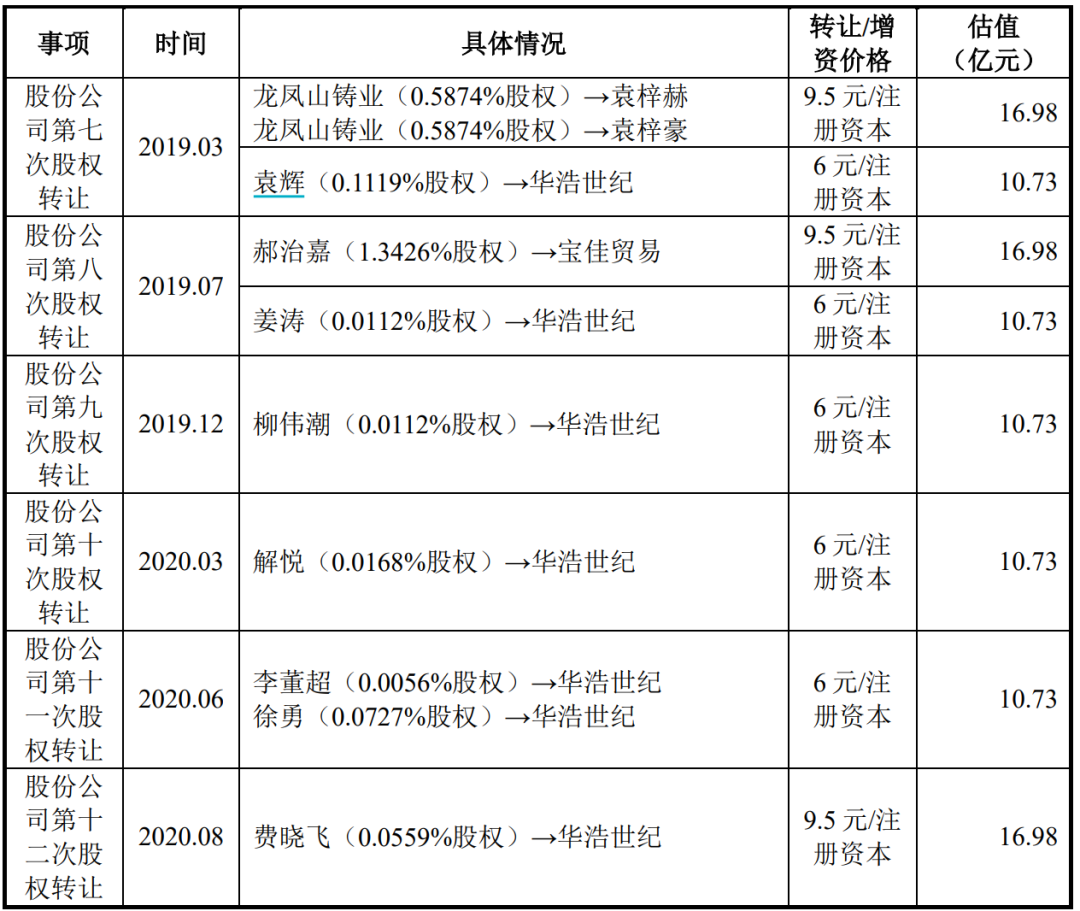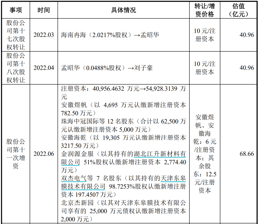 根据招股书,金力新能源15次股权转让、4次增资的具体情况: