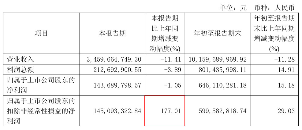 ▼三季报的时候,高能环境的扣非净利润就已经同比增长了177.01%。图片来源:高能环境
