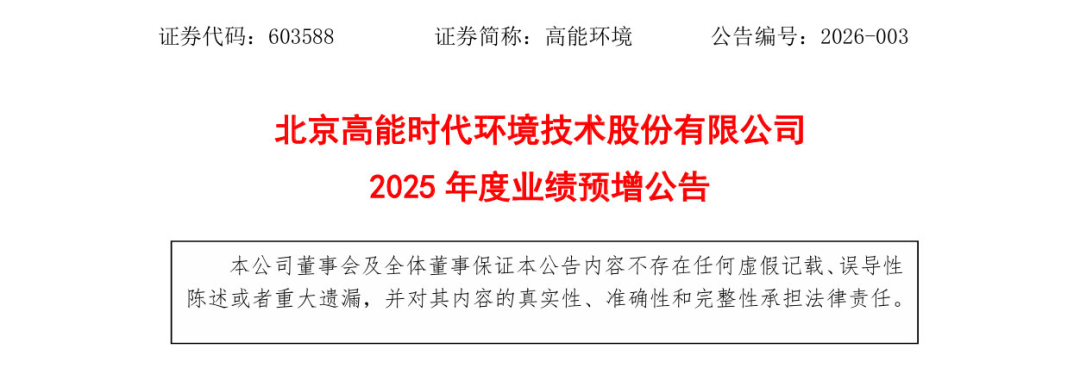 2026年刚开年,高能环境就“迫不及待”地发布了自己的2025年业绩预告,成为环保行业“第一个吃螃蟹的人”。