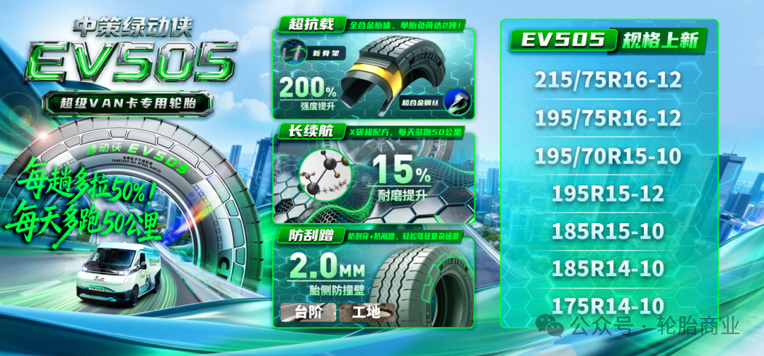 2026年1月5日,中策橡胶在超级VAN卡专用轮胎EV505全球首条上市后,迅速推出全规格系列新品,为城配物流市场带来技术革新。当前城配物流领域正经历结构性变革,"VAN系"厢式货车与微小卡需求并行,快递、冷链、建材等多元运输场景对轮胎性能提出复合型要求。传统通用型轮胎在重载能力、耐磨性、续航里程和安全性方面的表现已难以满足行业痛点,而EV505的问世正是对这一市场需求的精准回应。