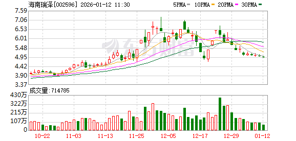 海南瑞泽(002596.SZ)1月12日在投资者互动平台表示,公司作为有限合伙人持有海南天泽坤泰20%份额。海南天泽坤泰独立运作,公司不参与其日常经营管理。