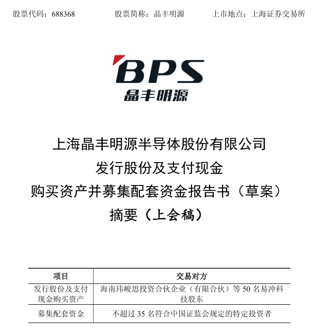 1月9日晚间,国内模拟和混合信号芯片龙头晶丰明源(688368)发布重大资产重组草案(上会稿),对并购易冲科技的方案进行修订完善。
