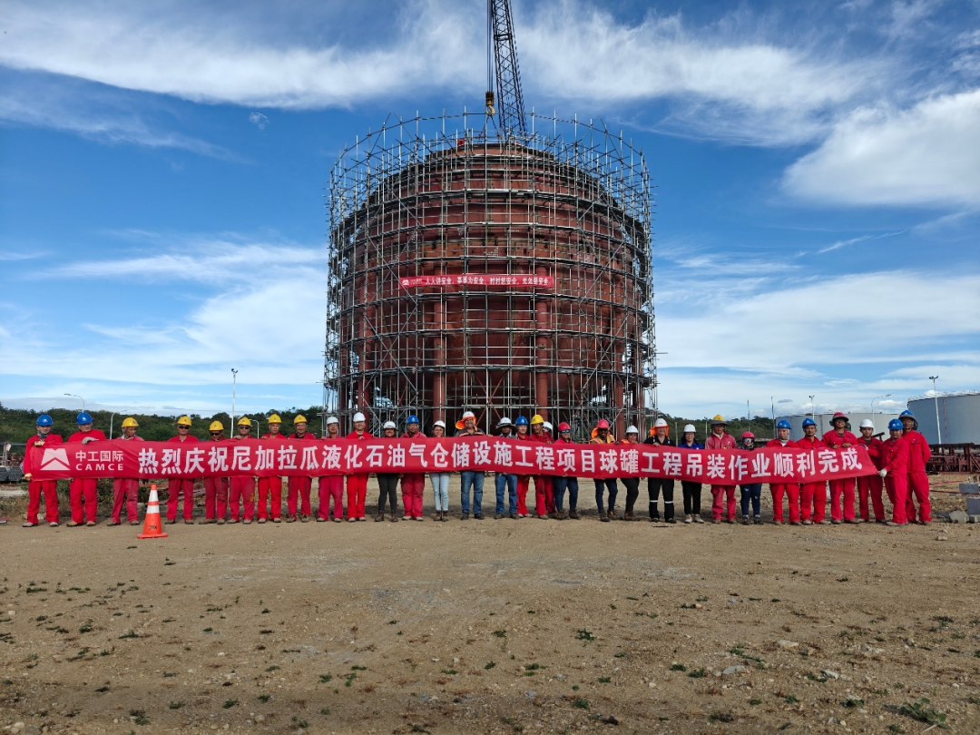 近日,尼加拉瓜液化石油气仓储设施工程项目V7054罐上极板吊装顺利完成,至此三台球罐整体组装圆满收官,标志着现场吊装作业全部结束,工程正式转入焊接施工阶段。