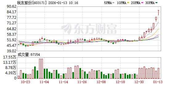 税友股份盘中涨停,已连收3个涨停板,截至9:26,该股报85.99元,换手率0.11%,成交量42.85万股,成交金额3684.67万元,连续涨停期间,该股累计上涨33.11%,累计换手率为3.88%。最新A股总市值达349.42亿元,A股流通市值349.02亿元。