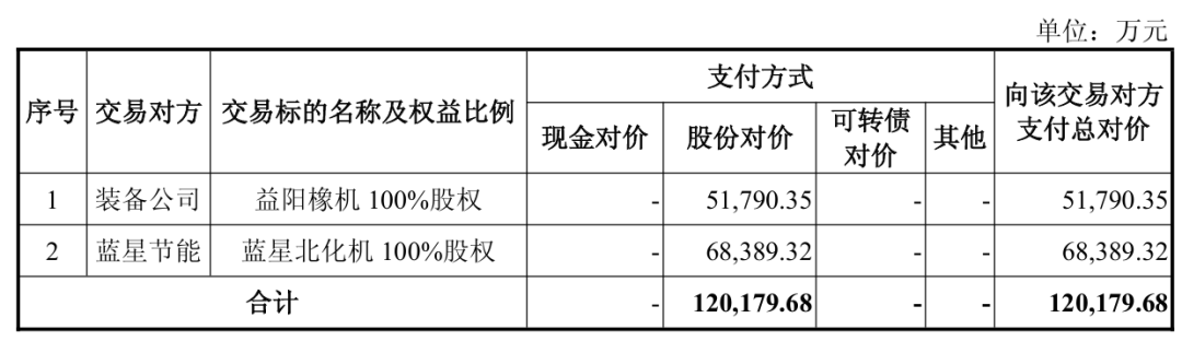 1月9日晚,中化装备发布重组草案,将以12.02亿元总对价购买母公司中国中化旗下两项资产,分别是益阳橡胶塑料机械集团有限公司(下称“益阳橡机”)100%股权、蓝星(北京)化工机械有限公司(下称“北化机”)100%股权。