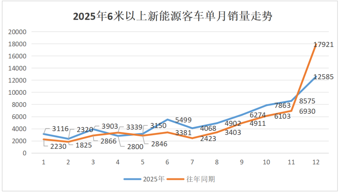 2025年,6米以上新能源客车市场成功跑赢2024年,总销量突破6.5万。