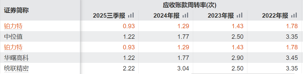 此时的应收账款,性质已然改变。它更像是为了制造出符合30%增长曲线的营收数据,并向市场证明增长叙事未破,而向客户提供的“增长燃料”。它严重透支了未来现金流,并形成恶性循环。上市公司最近三年的应收账款周转率均值(1.50)显著低于同行华曙高科(2.54),正是这种扭曲操作的显性标志。