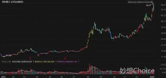 1月14日,A股特种轴承和超硬材料龙头国机精工(证券代码:002046.SZ)全天最高点达到54.97元/股,创下历史新高,不过午盘有所回落,全天收于49.76元/股。去年他们的股价涨了212.43%,今年截至1月14日累计涨幅已达15.24%。