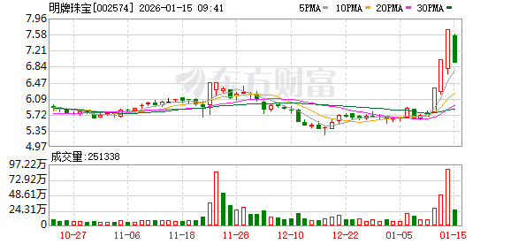 明牌珠宝(002574.SZ)1月15日在投资者互动平台表示,公司现有明牌传家金品牌门店近三十家,并持续加大明牌传家金品牌推广及渠道建设,以夯实品牌矩阵,推动业绩提升。