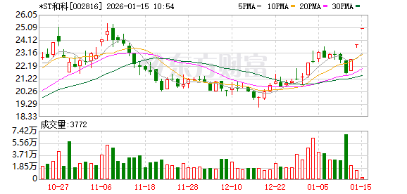 *ST和科盘中涨停,已连收3个涨停板,截至9:25,该股报25.00元,换手率0.05%,成交量5.14万股,成交金额128.50万元,涨停板封单金额为2921.00万元。连续涨停期间,该股累计上涨15.74%,累计换手率为3.66%。最新A股总市值达25.00亿元。