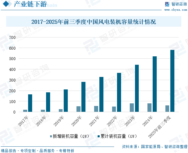 风电作为清洁能源体系的关键组成部分,在推动能源结构转型、实现绿色低碳发展方面具有重要战略意义。在此背景下,风电铸件作为风电机组的关键基础部件,其行业发展前景日益广阔。近年来,随着我国将风电产业纳入战略性新兴领域,国内风电装机规模持续快速扩张,目前已建立起全球领先的风电制造体系。在产业政策积极引导与市场需求持续释放的双重驱动下,中国风电产业已成功跻身国际竞争前列,形成显著优势。在国家对可再生能源发展的大力支持下,风电装机容量保持稳健增长。截至2025年9月底,全国风电新增装机容量为61.09GW,同比增加21.97GW;累计装机容量为581.59GW,同比增加102.04GW。未来,随着风电新增装机容量的不断增长,也将带动我国风电铸件需求稳步向前。