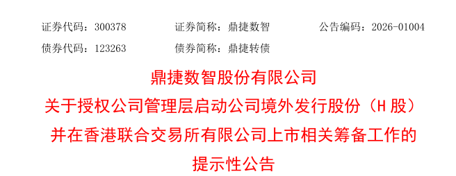来自上海静安区的A股上市公司鼎捷数智(300378.SZ)发布公告称,公司于2026年1月14日召开董事会会议,审议通过了《关于授权公司管理层启动公司境外发行股份(H股)并在香港联合交易所有限公司上市相关筹备工作的议案》。 根据公司总体发展战略与运营需要,为深入推进国际化战略,优化海外业务布局,打造国际化资本运作平台,进一步提升公司治理水平和核心竞争力,助力 公司高质量发展,公司拟在境外发行股份(H股)并申请在香港联合交易所有限公司挂牌上市。