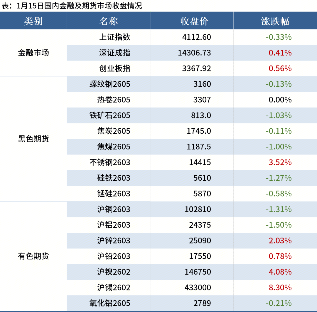 ◎上期所:自2026年1月15日收盘结算时起,锡期货合约的涨跌停板幅度调整为11%,套保持仓交易保证金比例调整为12%,一般持仓交易保证金比例调整为13%。