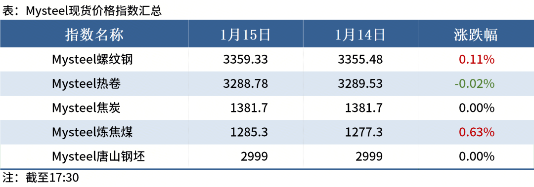 ◎1月15日,全国300家长、短流程代表钢厂废钢库存总量572.33万吨,较昨日增3.08万吨,增0.54%;日消耗总量55.25万吨,较昨日降0.18%;日到货总量58.33万吨,较昨日增0.64%。