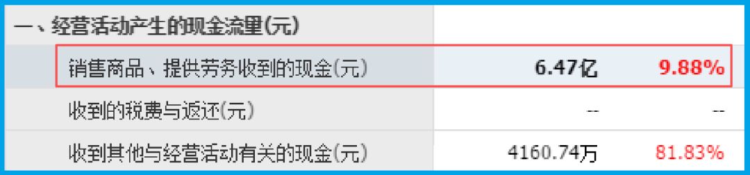 利润可以调节,但现金流不会说谎。接下来这个数据就很有意思了:销售商品收到的现金总额6.47亿,增长9.88%,与营业收入相当。