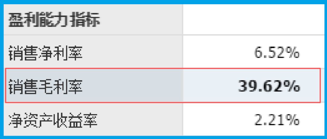 还有一个数据不容忽视:销售毛利率高达39.62%。