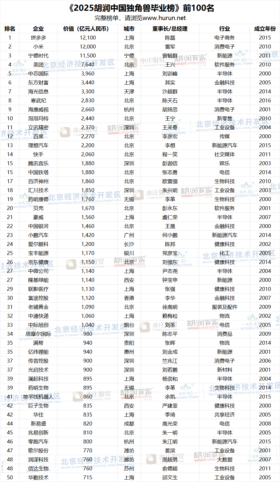 1月15日,胡润研究院在北京首发《2025胡润中国独角兽毕业榜》。