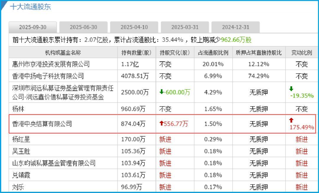 而外界最喧嚣的传闻是:北向资金(香港中央结算有限公司)近期对其加仓幅度高达175%。