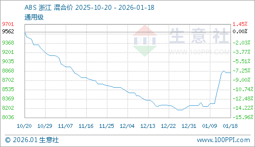 据生意社监测,ABS01月18日最新价格8837.50元/吨,最近10天上涨7.28%。