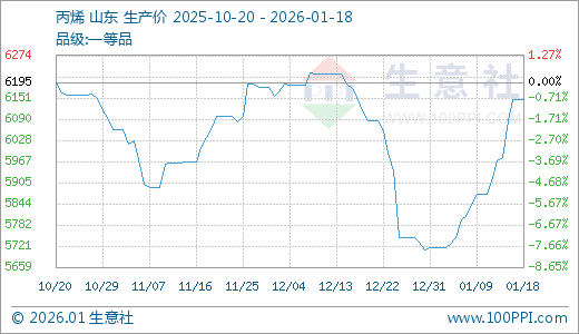 据生意社监测,丙烯01月18日最新价格6147.67元/吨,最近5天上涨3.02%,10天上涨5.25%,15天上涨7.52%。