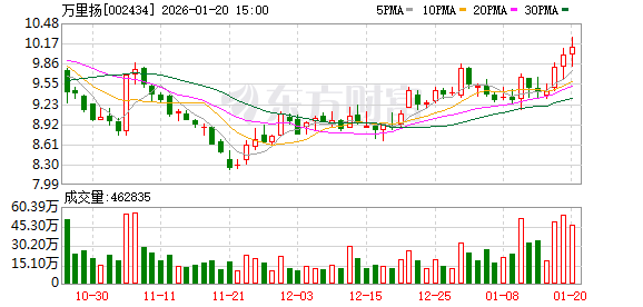 证券时报·数据宝统计显示,万里扬今日收盘价为10.12元,上涨1.20%,日换手率为3.53%,成交额为4.62亿元,全天主力资金净流入3075.06万元,近5日该股累计上涨6.75%,近5日资金合计净流入5093.36万元。