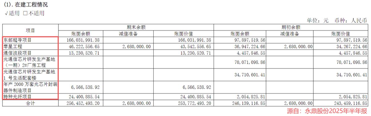 2025年半年报显示,永鼎股份的在建工程账面价值2.54亿元。其中“东部超导项目”的账面价值就达1.66亿元,占比高达65.35%,资源的倾斜正加速前沿业务的落地。