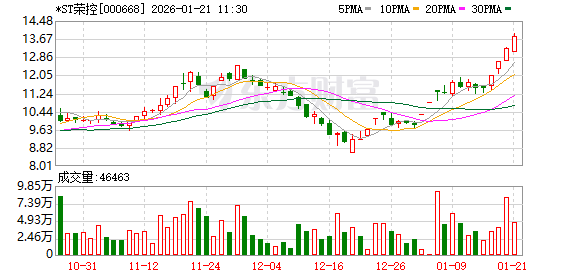 *ST荣控再度涨停,4个交易日内录得3个涨停,累计涨幅为20.97%,累计换手率为12.92%。截至10:35,该股今日成交量321.58万股,成交金额4347.81万元,换手率2.19%。最新A股总市值达20.41亿元。