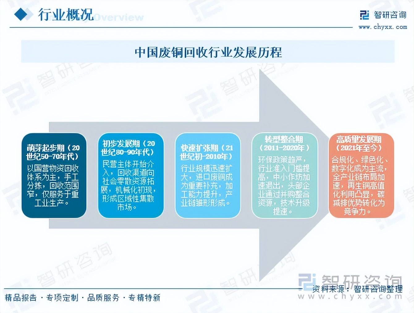 注:本文节选出自智研咨询发布的《2025年中国废铜回收行业发展历程、市场政策、产业链图谱、回收量、回收价值、竞争格局及发展趋势分析:行业呈现量价齐升的局面[图]》行业分析文章,如需获取行业文章全部内容,可进入智研咨询搜索查看。