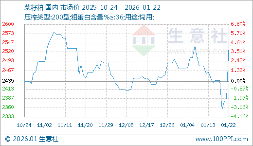 据生意社监测,菜籽粕01月22日最新价格2542.00元/吨,最近5天上涨4.27%。