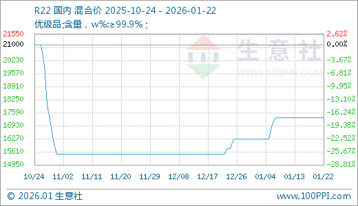 据生意社监测,R2201月22日最新价格17333.33元/吨,最近30天上涨10.05%,60天上涨11.83%。