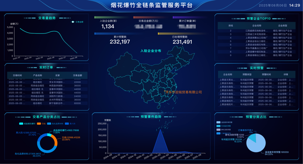 平台通过整合烟花爆竹领域的各大服务、监管和供销平台,实现了从生产、存储、运输到销售的全程信息溯源和智能监管。