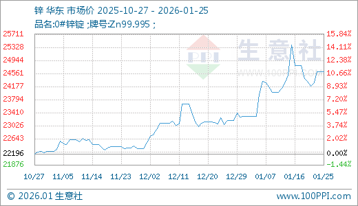 据生意社监测,锌01月25日最新价格24618.00元/吨,最近60天上涨10.02%。