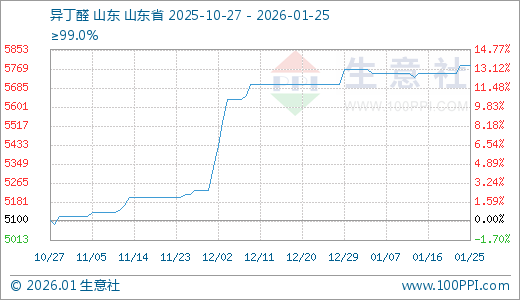 据生意社监测,异丁醛01月25日最新价格5783.33元/吨,最近60天上涨10.86%。