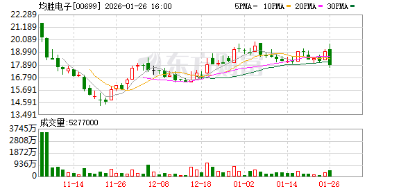 1月26日,均胜电子(600699.SH/00699.HK)发布2025年年度业绩预增公告,经初步测算,预计2025年年度实现归母净利润约13.5亿元,与上年同期相比,将增加约3.9亿元,同比增长40.56%;预计年度扣非归母净利润约15亿元。