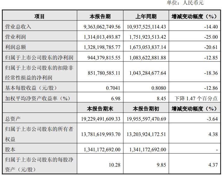 1月26日,国药现代(600420)发布公告,2025年度公司主要财务数据初步核算显示,营业总收入为93.63亿元,同比下降14.4%;归母净利润为9.44亿元,同比下降12.85%。