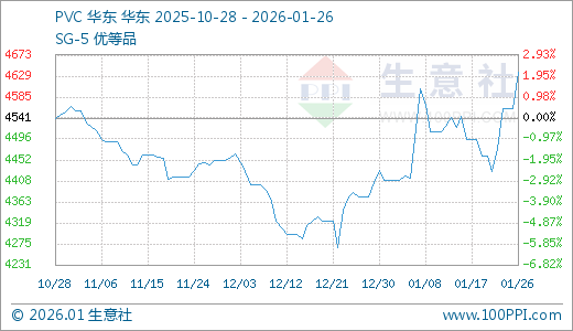 据生意社监测,PVC01月26日最新价格4637.00元/吨,最近5天上涨4.70%。