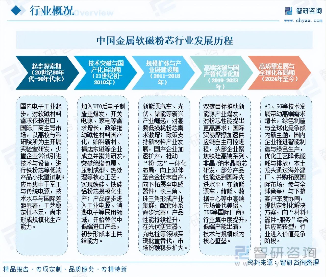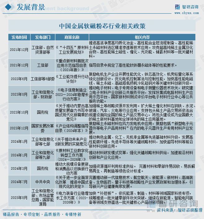 注:本文节选出自智研咨询发布的《2025年中国金属软磁粉芯行业发展历程、市场政策、产业链图谱、市场规模、竞争格局及发展趋势分析:头部企业占据主导地位[图]》行业分析文章,如需获取行业文章全部内容,可进入智研咨询搜索查看。