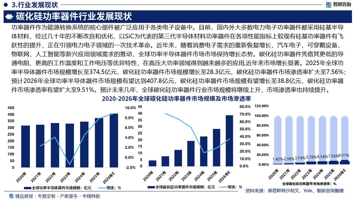 为探究碳化硅功率器件行业变化趋势(怎么变)、用户需求(要什么)、投放选择(投向哪)、运营方法(如何投)及实践案例(看一看),智研咨询发布了《2026-2032年中国碳化硅功率器件行业市场全景调研及投资潜力研判报告》。