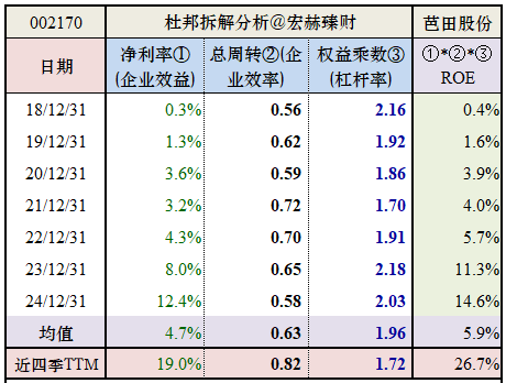 该公司近七年杜邦态势拆解: